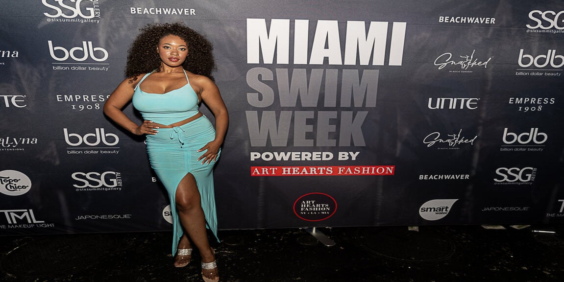 It's that time of year again when models strut their stuff on the runway during Miami Swim Week. Nyki Allen was one of the presenting designers who showcased her latest collection called "Royal Court" at the Art Hearts Fashion Event. She has been designing clothes since college at Michigan State University which has been for over 30 years now. We asked Nyki where her inspiration came from? She stated, "My inspiration comes from multiple things. I love nature, architecture and evening attire. My latest collection was inspired by the Bridgerton Series, written by Shonda Rhimes".